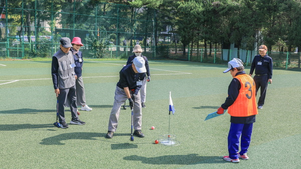 과천 어르신들이 26일 그라운도골프대회에 열중하고 있다. 사진=과천시