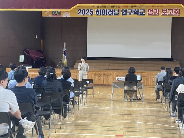 이어진 성과보고회에서는 2025 연구학교 운영 사례와 정책 실천 성과가 체계적으로 발표됐다. 교육청 및 지원청과의 유기적 연계 방안, 미래 과제로서 하이러닝 정책의 추진 전략 등이 제시되며, 관내 학교 간 협력 및 교원의 실천 역량 제고에 기여한 바가 크다.