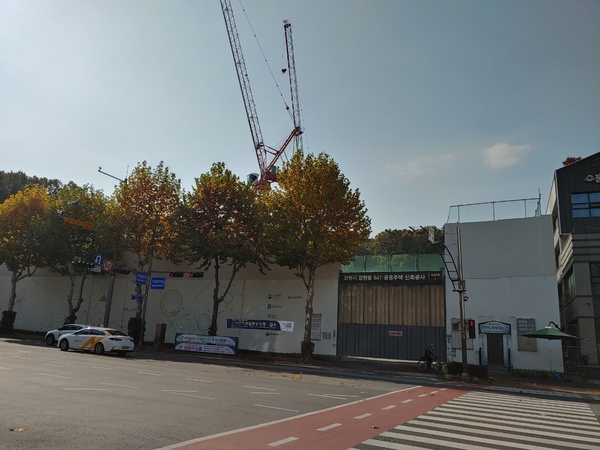 지난해 3월부터 공사가 중단된 과천시갈현동 옛 우정병원 재건축 공사장은 입주자모집공고를 보름여 앞둔 4일에도 정문이 굳게 닫혀있다. 사진=이슈게이트