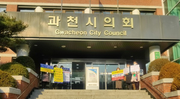 이날 시위에 나선 부모회는 과천시가 건립을 추진 중인 문원동 과천행복드림센터(Senior Welfare Center) 계획 전면 재검토를 거듭 요구했다.