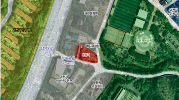 과천시가 건립을 추진 중인 과천행복드림센터 대상지. 청소년수련관 맞은편 공지다.