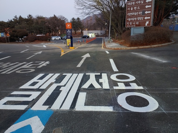 1일 서울대공원으로 들어가는 도로의 바깥 차선에 쓰여진 '발레전용' 안내문이 선명하다. 이슈게이트