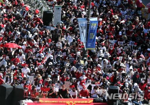 이번 집회에서는 삭발식도 진행됐다. 집회 참가자 중 미리 신청을 받은 여성 5명의 머리카락이 잘리는 순간, “시원하다” “상여자” 등의 구호가 터져 나왔다.