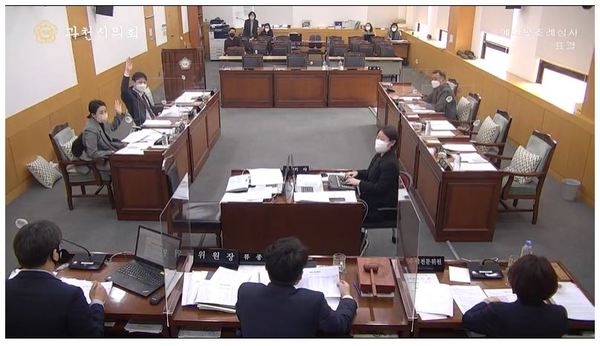 과천시 어린이집 설치 예산에 대해 11일 시의회 특위 위원들이 표결을 하고 있다. 과천시의회인터넷방송캡처