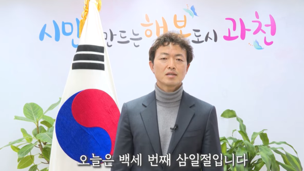 김종천 과천시장이 삼일절 기념 영상을 통해 삼일절 정신을 강조하고 있다. 유튜브영상캡처