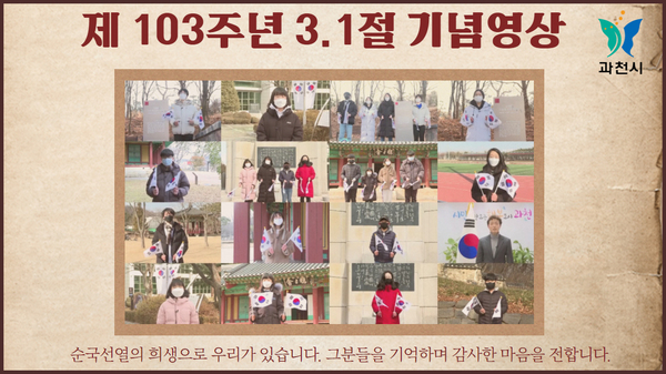 과천시는 코로나19의 확산으로 3.1절 기념행사를 개최하는 대신 영상을 제작해 3.1절을 기념한다.