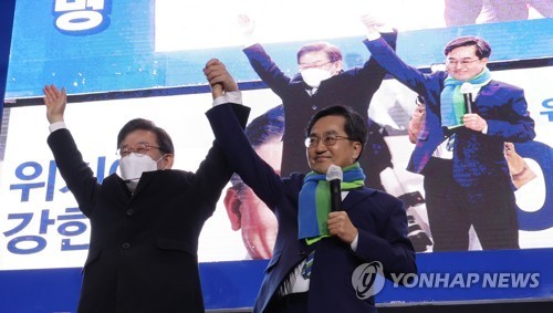 이번 대선 유세에서 김동연 새로운물결 후보가 이재명 민주당 후보의 손을 들어주고 있다.
