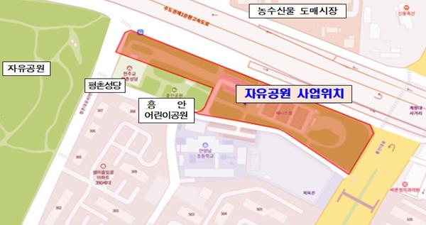 평촌신도시가 생기면서 조성된 자유공원 주민쉼터는 오랜 세월로 시설이 노후해 시민들이 이용하기에 불편해 환경개선이 요구되는 상황이었다.
