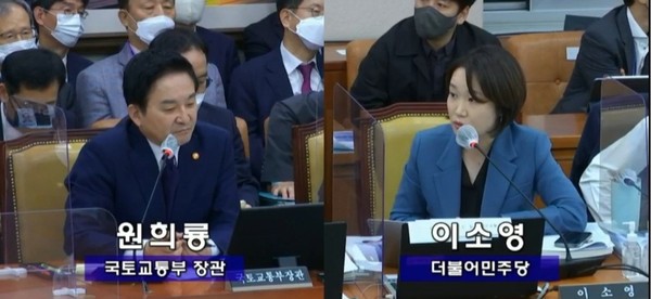 이소영, 원 장관에 "황당하지 않나요?" 원희룡 "그렇네요"