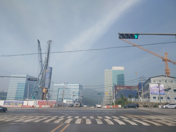 6일 과천 지식정보타운 신설 지하철역사 예정지 주변 기업건물 공사가 거의 완공되기 직전의 모습이다. 하지만 지하철역 공사는 국가기관 간 이기주의로 10월 현재 착공도 못하고 있다. 연말에 착공하면 2027년말 지하철역 공사가 끝날 것으로 예상된다. 이슈게이트