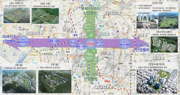 ‘+’에는 안양시를 중심으로 동서축뿐 아니라 남북으로 서울대~안양시청~안양교도소~모락산을 잇는 ‘문화·연구개발(R&D) 벨트’를 구축한다는 의미를 담았다.