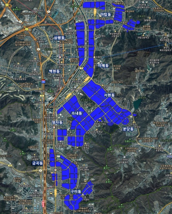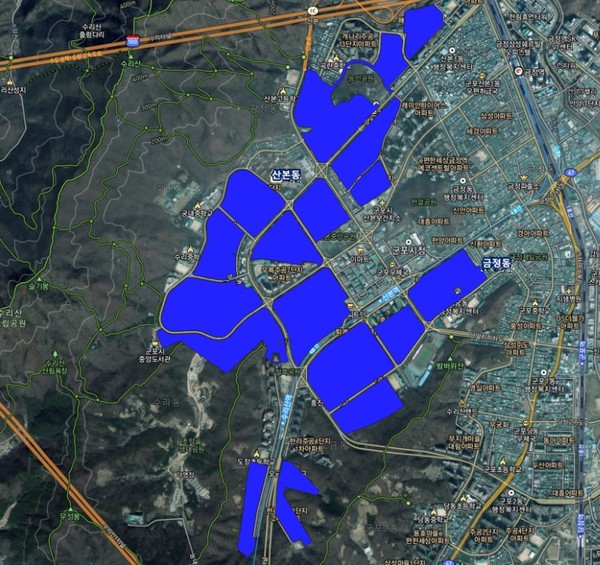 성남시 분당구 6.45㎢, 안양시 동안구 2.11㎢, 군포시 산본동 2.03㎢