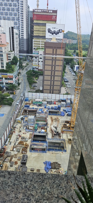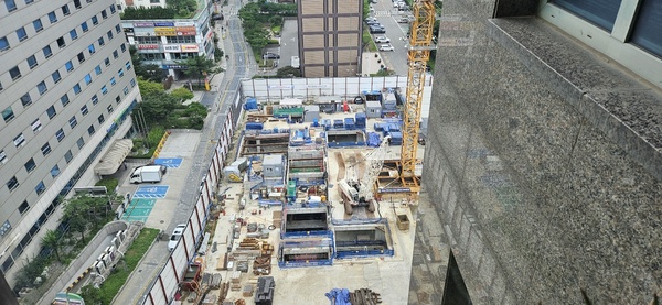 시공사인 한양건설은 지하 7층 터파기 공사를 역레이커를 설치, 역타(탑다운)방식으로 공사하고 있다.