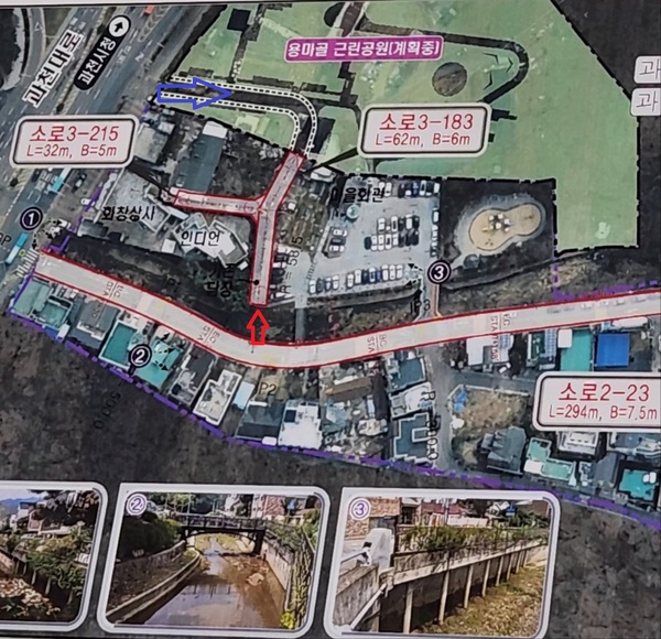 용마골은 2005년 개발제한구역이 해제됐지만 경로당 뒤쪽 4필지는 맹지가 됐다. 이에 따라 과천시는 교량건설을 추진해왔다.