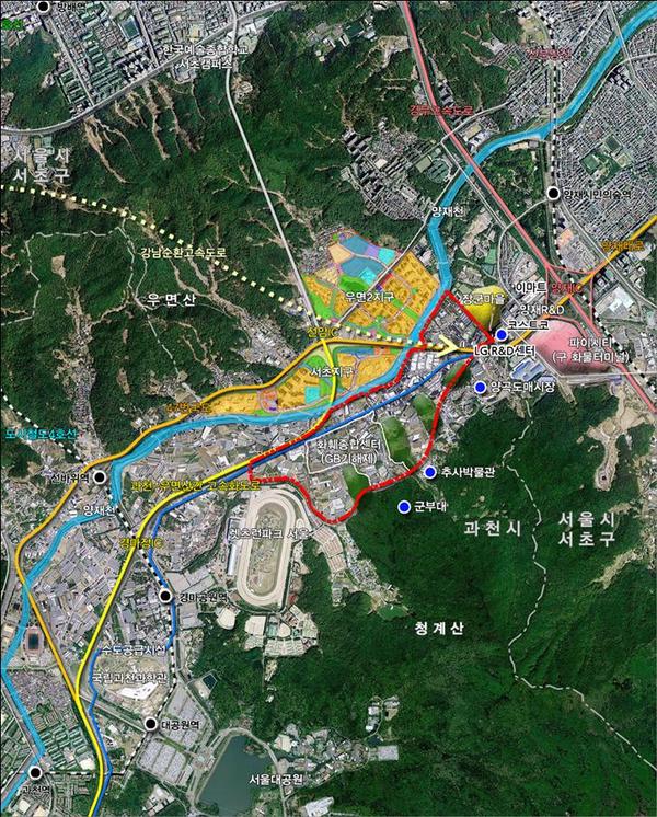 과천주암지구는 양재천을 사이에 두고 서울 서초우면지구 맞은편에 위치한다. 이슈게이트