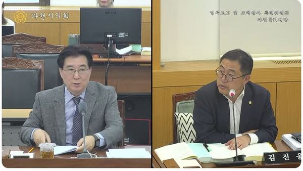 박성택 과천문화재단 대표가 29일 김진웅 의원의 질의에 답변하고 있다. 과천시의회인터넷방송캡처