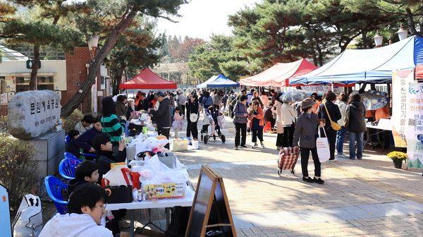 9일 과천시문원동 문원체육공원에서 열린 ‘문원 아나바다 장터’. 문원동 주민자치위원회가 주관한 이날 장터는 탄소중립 체험, 개인판매, 먹거리, 놀이, 우산 수리 등 여러 부스가 운영돼 북적였다. 어른들은 탄소중립 퀴즈를 맞춰 친환경 고체 비누를 선물받고, 폐현수막 장바구니를 받으면서 자원 재활용의 의미를 되새겼지만, 아이들은 한자리씩 차지하고 게임에 여념이 없었다. 과천시