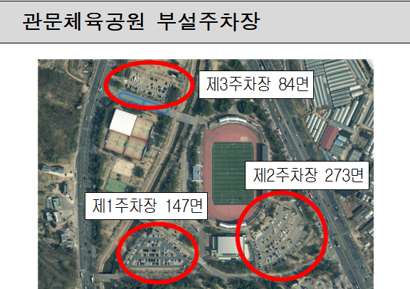 대상은 관문체육공원 1,2,3 부설주차장 504면, 문원체육공원 지상 지하 251면 등 총 755면이다.