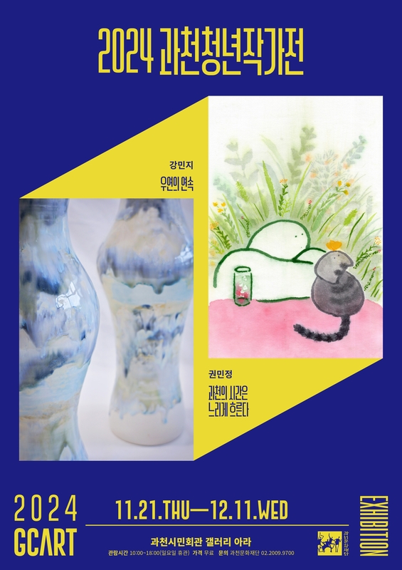 기획전시 ‘2024 과천청년작가전’이 21일(목)부터 12월 11일(수)까지 과천시민회관 갤러리 아라에서 선보인다. 1년 이상 과천에 거주했거나 활동 경력이 있는 만 20~39세 조형예술인을 대상으로 지원하는 사업이다. ‘2022 과천청년작가전’ 첫 개최를 시작으로 지난해 ‘2023 과천청년작가전’을 성공적으로 마무리했다. 이를 통해 조정은, 신선영, 장한, 김소정 총 4명의 작가를 배출했다. 제3회 ‘2024 과천청년작가전’ 참여작가로는 권민정, 강민지 두 명의 작가를 엄선했다.