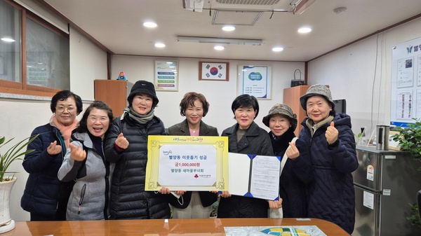 과천시 별양동 새마을부녀회가 지난 20일 바자회 수익금 100만 원을 별양동에 기부했다.