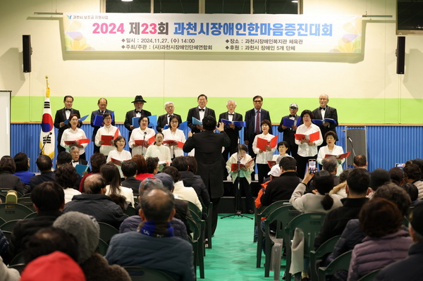 27일 과천시 장애인 한마음 증진대회서 합창단이 축하공연을 하고 있다. 과천시
