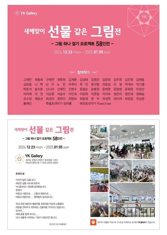 YK(Young Korea)전에 이어 오는 23일부터 2025년 1월 5일까지 새해맞이 선물같은 그림전을 개최한다.