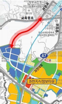 과천시는 과천지식정보타운 입주 기업의 출퇴근 교통량 분산을 위해 지정타~ 교육원로 연결도로 개설을 위한 기본구상 및 사전 타당성 조사 용역을 2025년 예산에 편성했다.