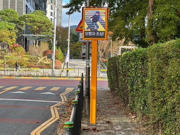 영상식 경고 시스템은 기존 문자형 전광판을 보완해 보행자나 자전거가 횡단하는 상황을 운전자에게 직관적으로 보여준다. 특히, 과천고교삼거리처럼 자전거를 이용해 등교하는 학생과 우회전 차량이 혼재한 지역에서는 더욱 효과적일 것으로 기대된다.
