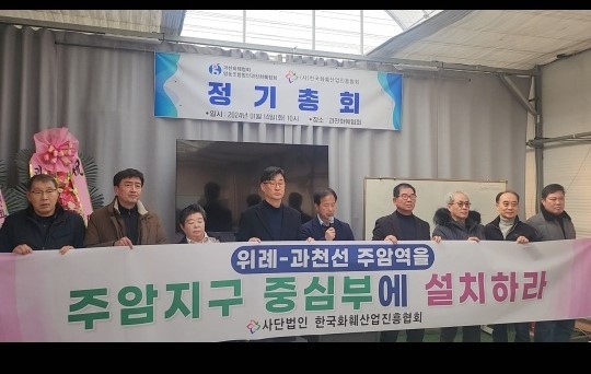 화훼협회는 “서울시의회의 청원서 채택은 과천위례선의 근본 도입을 부정하는 적반하장식의 내용으로 도저히 납득할 수 없다”라며 “과천~위례광역철도는 지난 2020년 6월 3기 신도시개발 광역교통개선 대책으로 국토부가 과천구간 연장 추진을 발표한 것으로 당초 원안대로 역사위치가 확정되어야한다”고 당위성을 주장했다.
