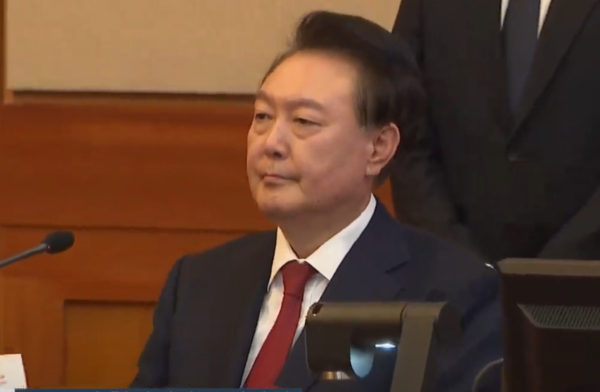 윤 대통령은 "제가 오늘 처음 출석해서 간단하게만 말씀드리겠다"며 앉은 상태로 재판관들을 바라보며 발언을 시작했다.