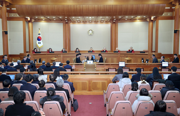8인의 헌법재판관이 지난 14일 윤석열 대통령 탄핵심판을 진행하고 있다. 헌법재판소