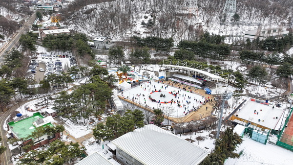 설경의 문원야외스케이트장. 오른쪽은 썰매장이다.