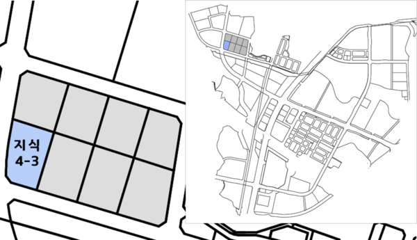 지식 4-3BL 부지면적은 2,278㎡(약 700평) 규모로 용지 공급액은 149억 6천646만원이다.