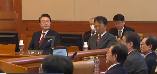 지난달 21일 헌법재판소 심판정에 출석한 윤석열 대통령. 연합뉴스TV캡처 자료사진