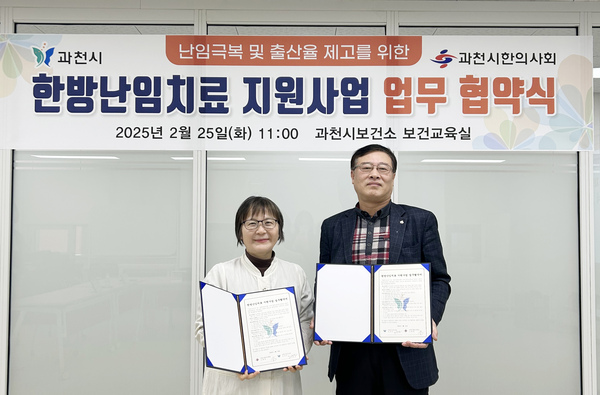 과천시는 올해 3월부터 ‘한방난임치료 지원사업’ 본격 추진을 앞두고 원활한 사업 추진을 위해 25일 과천시 한의사회와 업무 협약을 체결했다.