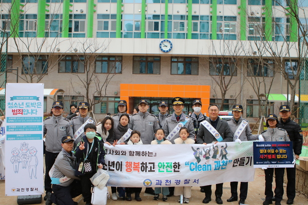 과천경찰서는 4일 오전 등굣길 율목중학교 앞에서 한국마사회 등 관계기관과 함께 ‘청소년 도박예방 및 학교폭력 예방을 위한 캠페인’을 진행했다.