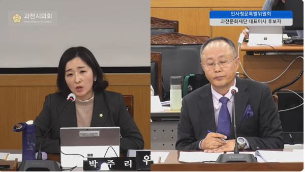 박주리 과천시의회 인사청문회 특위위원장이 질의하고 있다.