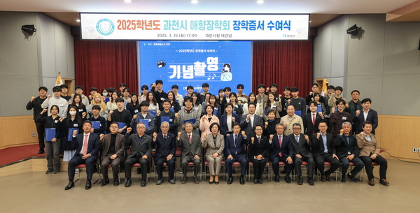 과천시 애향장학회는 25일 시청 대강당에서 ‘2025년도 장학증서 수여식’을 열고 장학생으로 선정된 지역 내 대학생 250명에게 총 7억 5천만 원의 장학금을 전달했다.