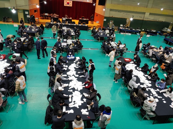 지난 22년 3월9일 과천시 관문체육관에서 20대 대선 개표가 진행되고 있다. 이슈게이트