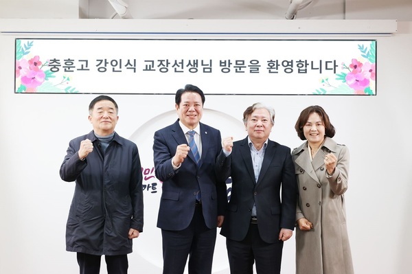 안양시가 15일 시청 접견실에서 충훈고등학교의 자율형 공립고등학교 추진을 위한 간담회를 개최했다.(왼쪽부터 강득구 국회의원, 최대호 안양시장, 강인식 충훈고등학교장, 이승희 안양과천교육지원청 교육장). 안양시
