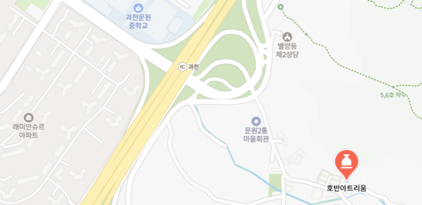호반아트리움은 경기 과천시 사기막길 71-7에 위치하며 바로 앞에 소규모 공영주차장이 있어 무료주차가 가능하다.