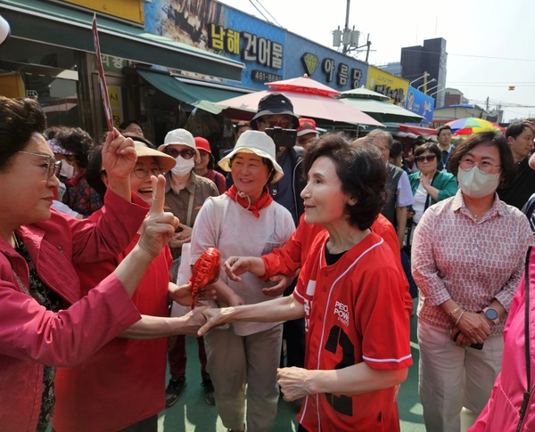 설 여사는 시장을 돌며 일일이 상인들과 악수와 인사를 나누고 시민들과 셀카를 찍는 등 친근한 모습으로 민심을 살폈다. 현장을 찾은 시민들은“이웃처럼 느껴졌다”,“배우자의 모습에서 후보의 진정성이 전해진다”고 말했다.