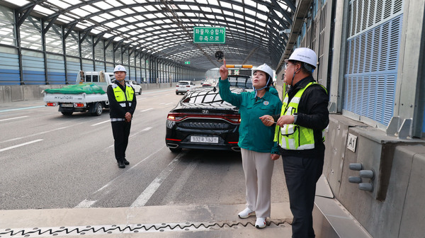 신계용 과천시장이 29일 갈현고가교 방음터널 전면교체 이후 현장을 방문, 안전을 점검하고 있다. 과천시