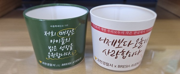 과천경찰서가 제작한 커피컵홀더. 과천경찰서
