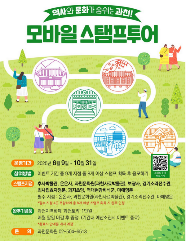 과천시는 6월 9일부터 10월 31일까지 ‘역사와 문화가 숨 쉬는 과천! 모바일 스탬프 투어’를 운영한다.