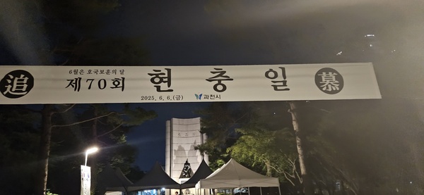 과천시는 5일 현충일 추념식을 앞두고 중앙공원 현충탑 앞에 기념 현수막을 걸어놓았다. 이슈게이트