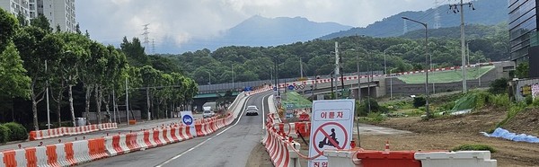 당초 우회도로 하행차로 개통은 6월말쯤으로 예정됐지만, 방음터널 자재 교체와 방재시설 보완공사로 지연됐다.