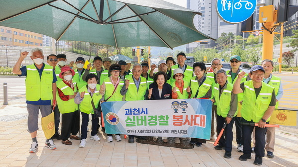 과천시 실버경찰봉사대는 대한노인회 과천시지회 및 관내 경로당 회장단 회원들로 구성된 자율 봉사단체다.