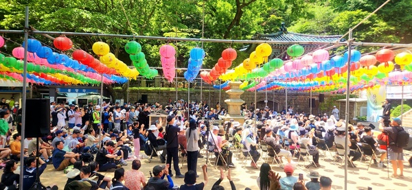 햇살이 따갑고 더운 날씨임에도 산사음악회를 보러 온 시민들로 북적였다.