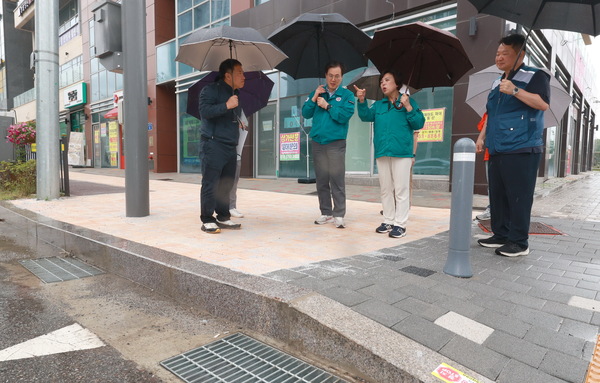 린파밀리에(S8블록) 아파트 앞 사거리 일대에서 진행했다. 해당 지역은 지난해 폭우로 다수의 민원이 집중한 가운데 올해도 집중호우 시 침수 위험이 큰 지역으로 분류된다.